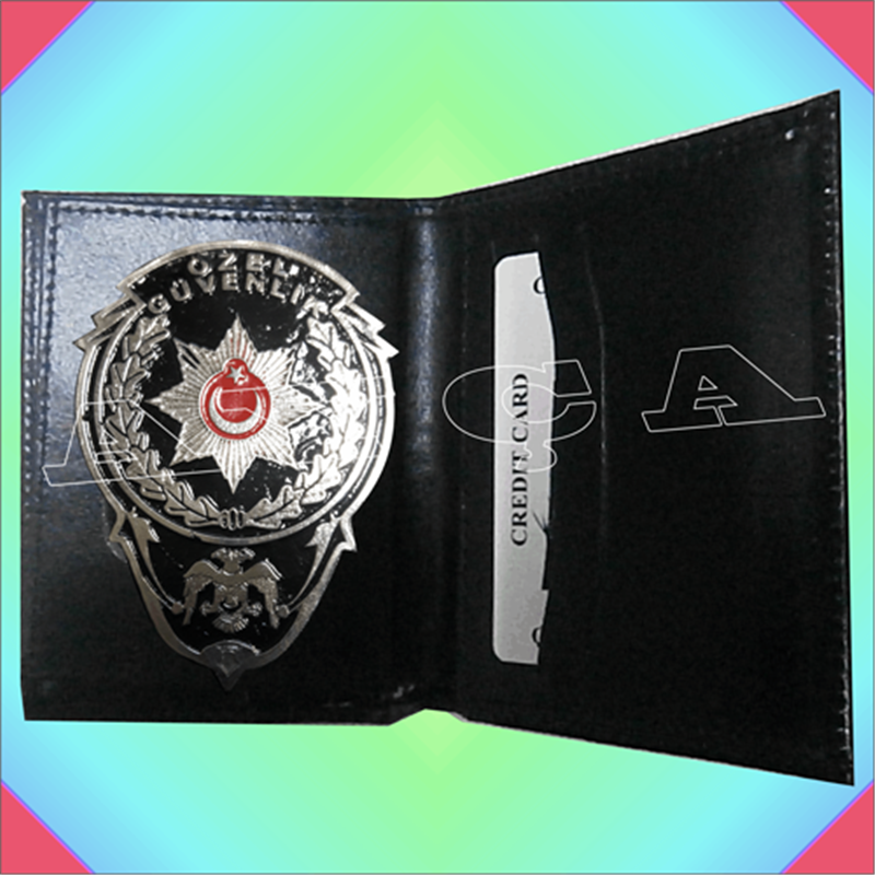 ÖZEL GÜVENLİK DÖKÜM NİKEL KAPLAMA CÜZDAN ROZETİ KUZU DERİSİ CÜZDANLI